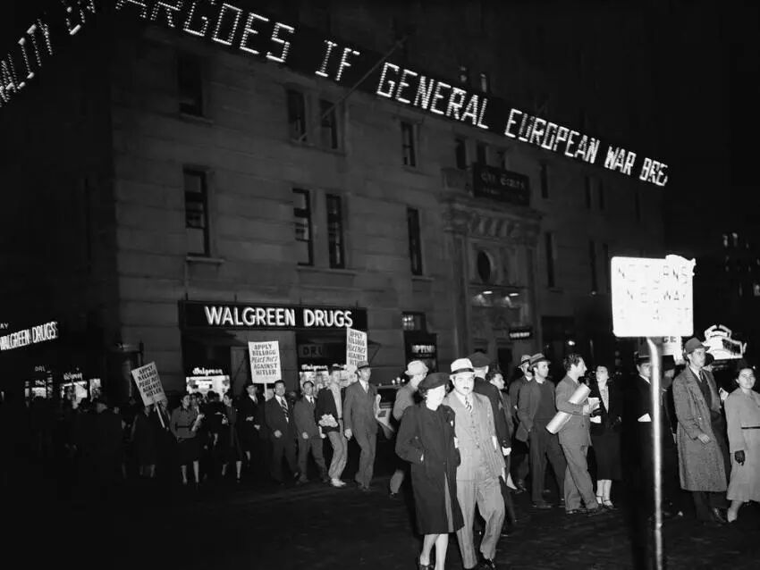 最著名的是日本宣布投降的时候,纽约时报大厦外墙的电子屏第一时间通报了二战结束的新闻,在附近上班的人们得知这个消息后纷纷放下手头的工作,涌到时代广场去看“官方,杜鲁门宣布日本投降”那短短的一行字。
