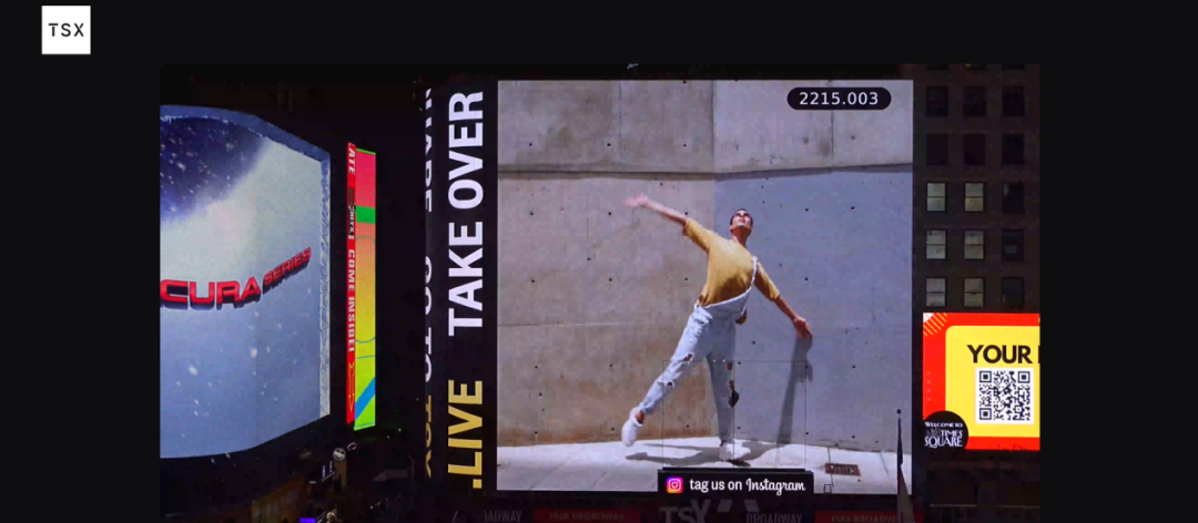 从上图也能看出来,这些短视频里出现的大多数都出自同一块屏幕,也就是多伦多证券交易所百老汇大楼这块巨型电子屏。不过与周围主要接商单的广告屏不同,这块屏幕在今年年初就开始以40美刀15秒的价格开放给每个创作者,而非那些只是想着花钱买曝光的商人。