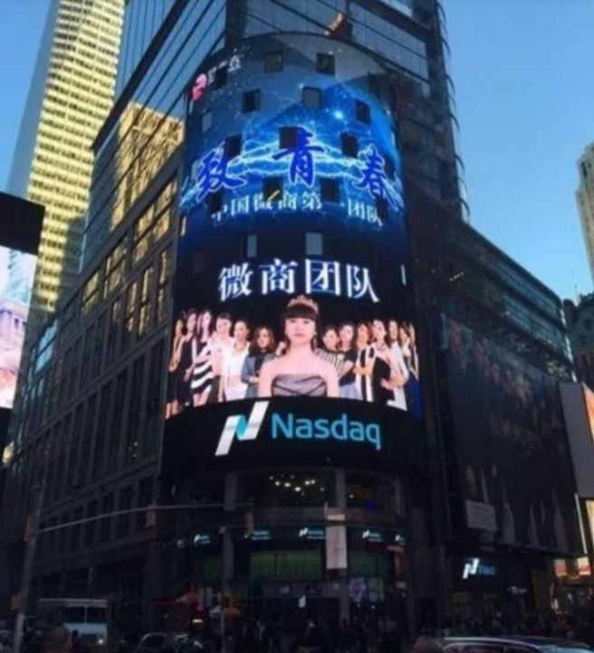 而当在时代广场上投广告的门槛下降,国内有钱人越来越多的背景下,微商和用爱发电的粉丝也发现了这座金矿。微商眼中的时代广场是个给自己镀金的利器,只要花上几万块钱在这里投个屏,找几个老外当群演做个假模假式的采访,就能拿到国内吹上好一阵子。