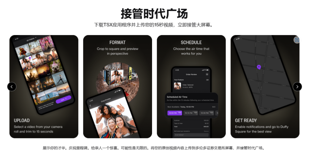 实际上广告主提供的服务已经相当周到了,只需要下载它的APP就能非常方便地下单和上传视频,经过一段时间的审核就可以去时代广场看你的大作了。即便你不在纽约也没关系,官方也早早在隔壁大楼上架起了摄像机,不仅是24小时直播还有往期投屏的历史记录任你查看。