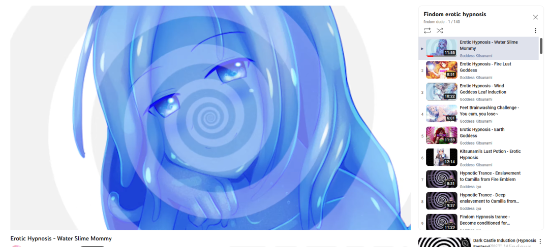 于是油管上的众多涩涩ASMR中,就有了催眠这个相当特殊的分类。与那些直球露骨的舔耳ASMR 不同,催眠ASMR不靠耳鬓厮磨的音效来勾起你对涩涩本能,而是有一段相当长的前戏,像恶魔的低语那样让你一点点卸下心房,顺从它的引导沉浸其中。