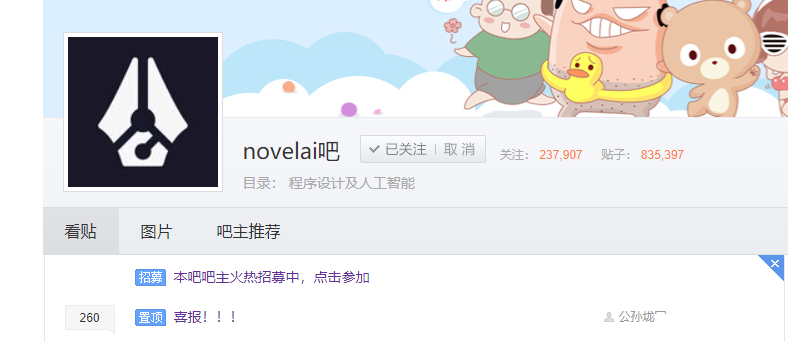仅仅几个月之前,这个名为“NovelAI”的百度贴吧还有些死气沉沉。