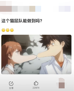 不只是因为这样的行为是无趣的。更是因为,就算真的有解不出来的题目,也会被淹没在大家的欢声笑语当中就算真的有难以完美解答的题目,也会有其他“牌佬队”“特摄队”(甚至包括占据贴吧广告位的“广告队”)站出来,暂时接过猫鼠队的大旗。