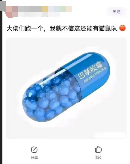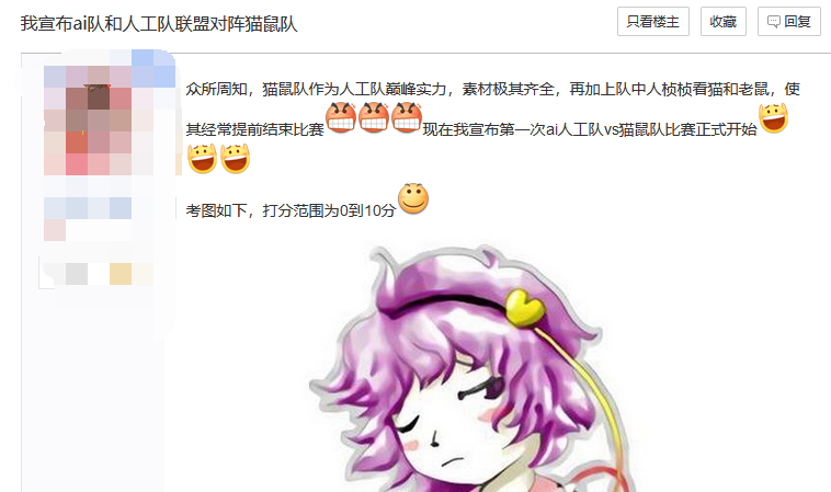前有chatgpt的天敌弱智吧,如今有猫鼠队为代表的人工跑图队。每当我以为贴吧已经到达瓶颈之时,他们总会以一种更离奇的整活方式,向我等深刻诠释什么叫真正的“没有瓶颈”。