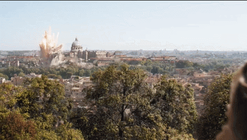 虽然没了“车撞卫星”这种乐子人们津津乐道的烂俗桥段,但玩心大起的编剧,这次一度想要炸了整个梵蒂冈……