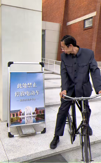 如果末代皇帝来到21世纪的街头,他将会作何反应?姜阿四的视频大概就是这般的主题。在视频的前半段,他常常背着手或是推着老旧的自行车,乱入到现代都市的每一个街头当中,显得那般格格不入。