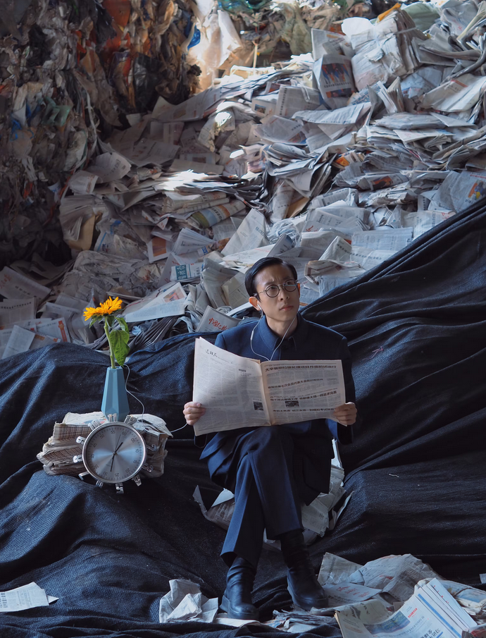 下一秒,他坐在已成为垃圾的报纸堆之下,随手读着其中一张,不知自己究竟是在报纸里还是报纸外。