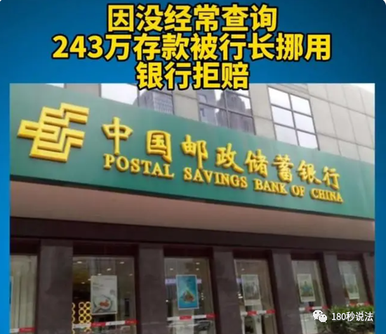 南京市江宁区一储户243万元存款被行长挪用,虽然行长入狱了,但银行拒赔,理由竟然是“当事人存款长期没有查询,不符合常理”。