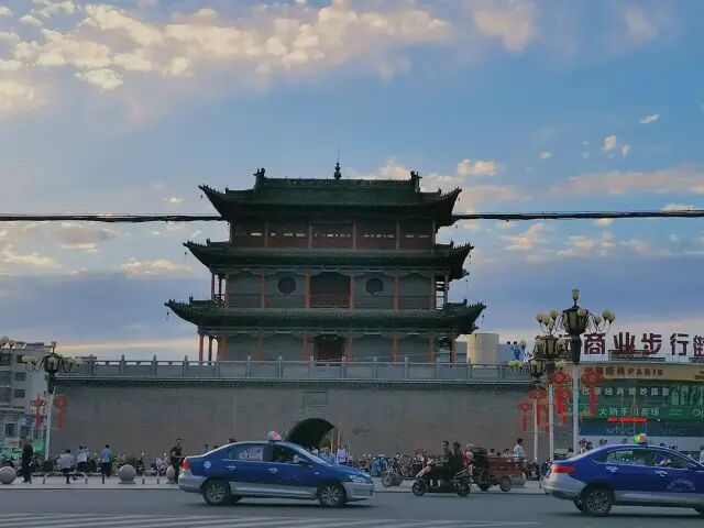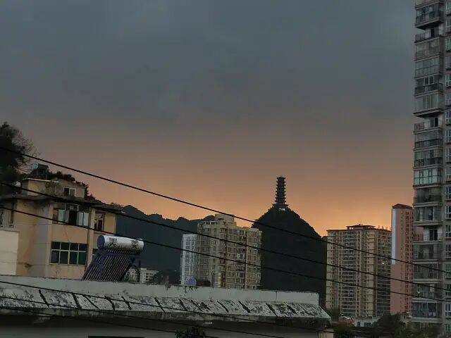 我们县城中央的鼓楼。为她其后流丽的云霞