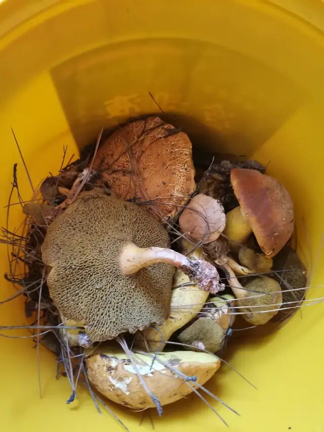 雨后,周围的山上,蘑菇悄悄冒出头来。大家夜里三四点钟就会扛起锄头和耙子,去山里拾菌子。