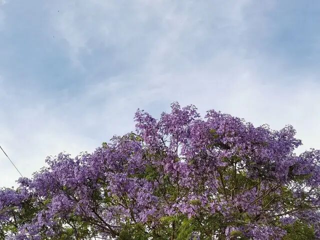 有一条路,栽满了蓝花楹。花开的时候就像置身于紫色的海洋