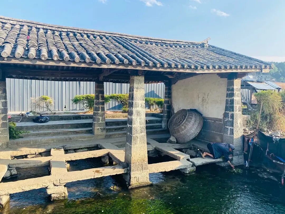 《我的团长我的团》取景地,那天和小伙伴骑着小电驴晃悠,看到一位与亭子融为一体的阿伯,正在认真仔细地清理着河水