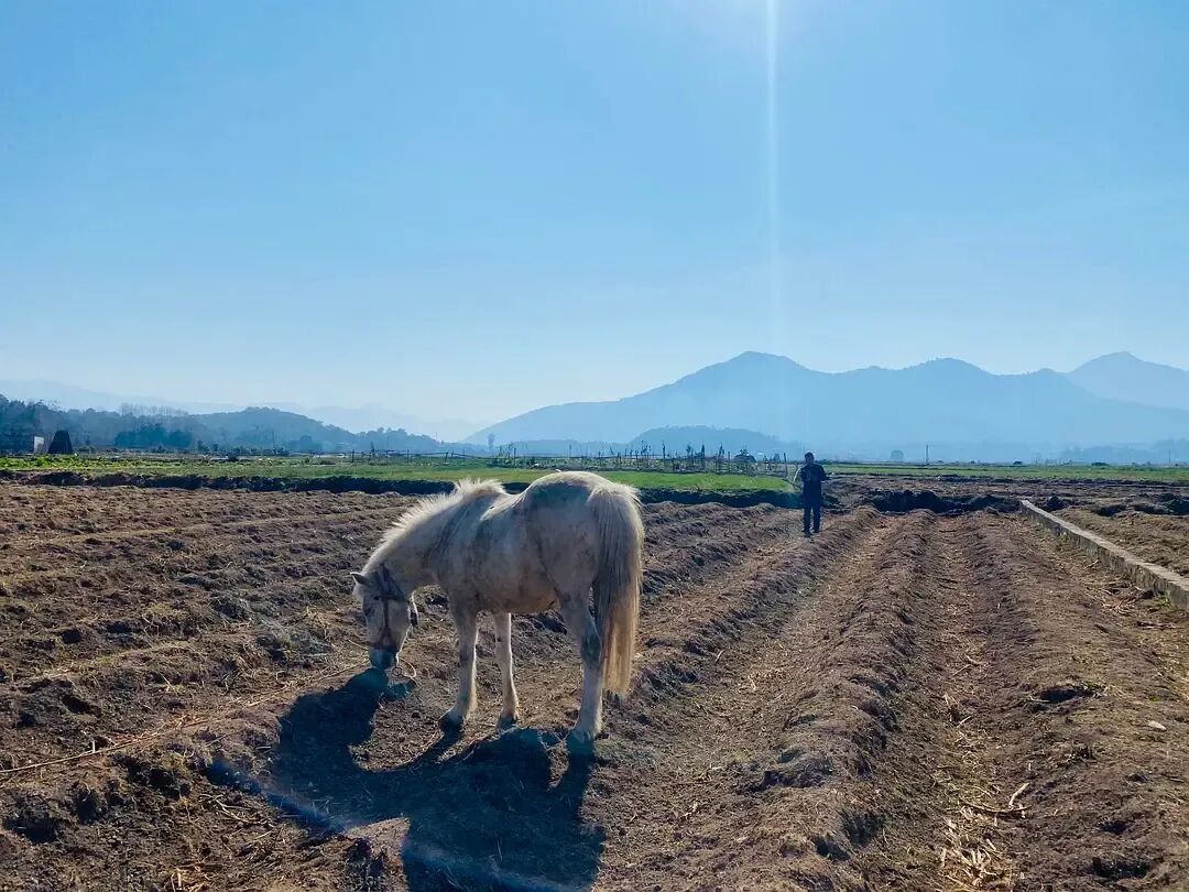 一人一骡。我的老父亲过年玩着小朋友的飞行器,在家操作得十分得意。不料!飞行器突然不受控制,脱离家的围墙直奔田埂而去,我和老爸急急忙忙打开后门,望眼而来的是数目惊人的骡子,但老爸却身手矫健一下就找到了玩具,特地给老父亲留影一张,希望我的爸爸永葆童心童趣~