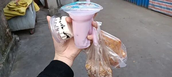 手里拿的一共六块钱。一块钱一杯的奶茶卖了十几年