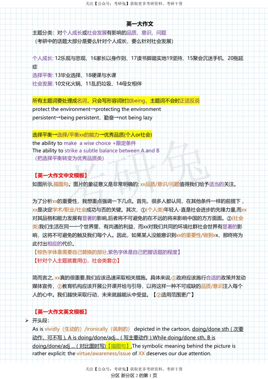 考研英语 | Monkey老师大小作文模板和预测笔记!PDF可打印!