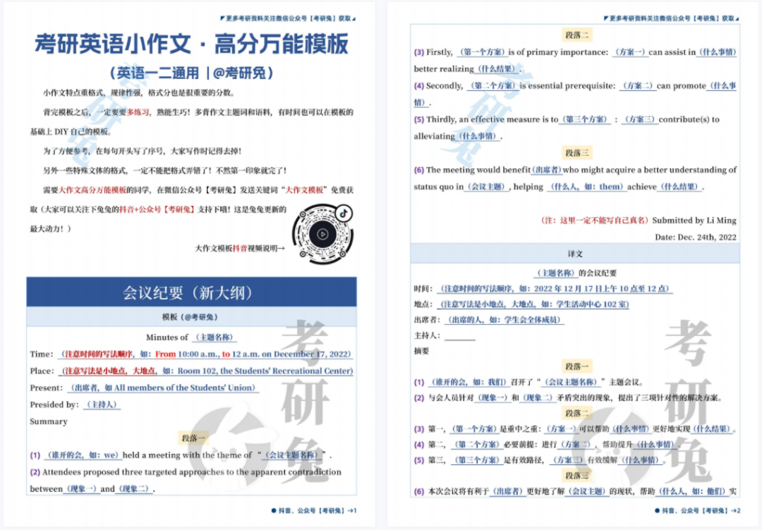 作文模板汇总(大作文+小作文)!