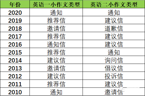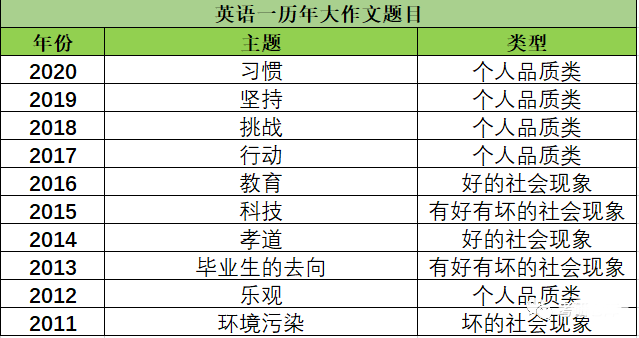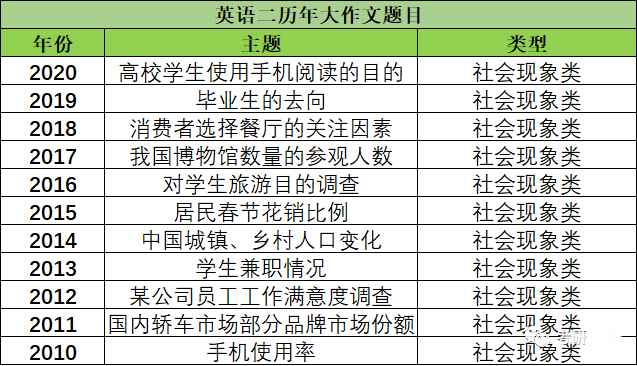 我们通过历年的真题情况来看:英语二是固定的话题,一直以社会现象类出题,英语一是社会现象类和个人品质类出题。但是小作文的类型就比较多,因此相对备考比较困难一些。