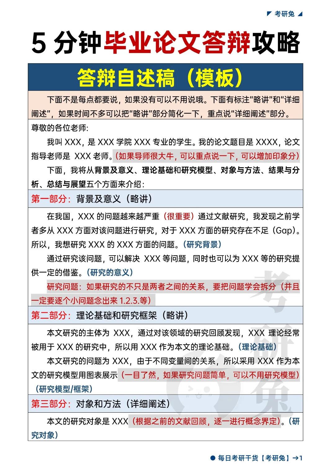5分钟论文答辩攻略来!答辩自述稿(模板)