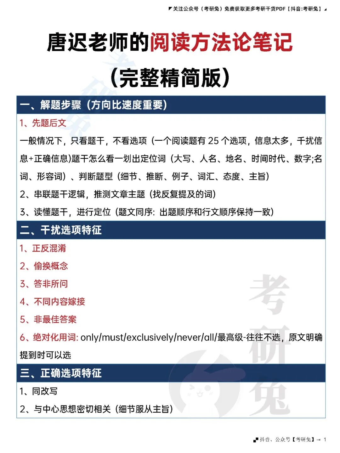 主要是唐迟老师阅读方法论的一些精华总结,一共只有4页pdf,是推荐大家都可以看看的。