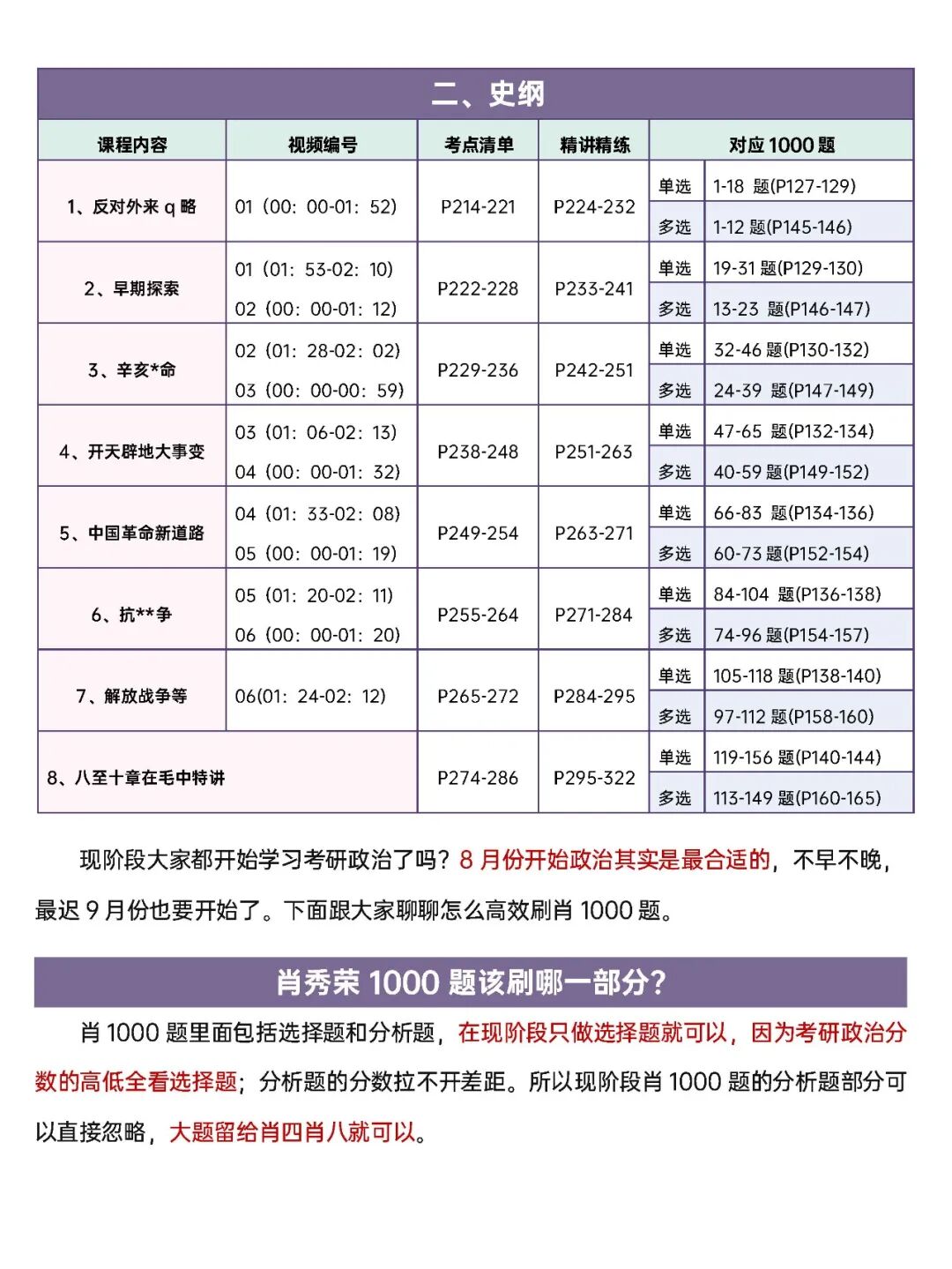 这个关系表方便大家在看徐涛强化课的同时,高效利用好这三本书(肖秀荣精讲精练、考点清单、肖秀荣1000题)。