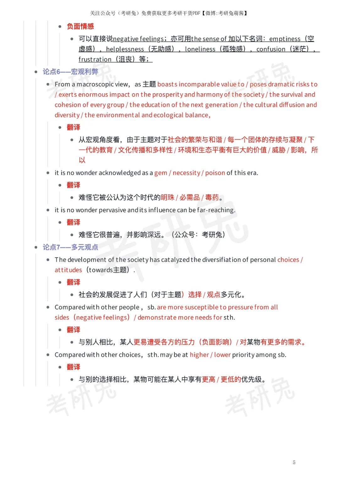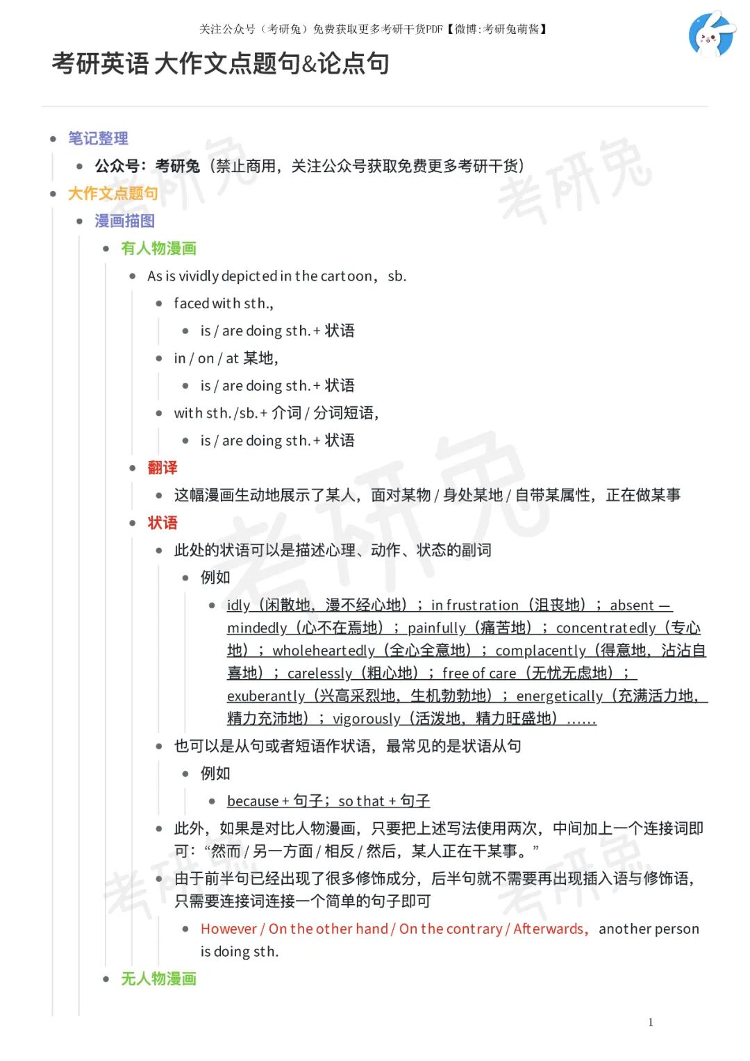 考研英语 | 大作文点题句&论点句笔记!PDF可打印!