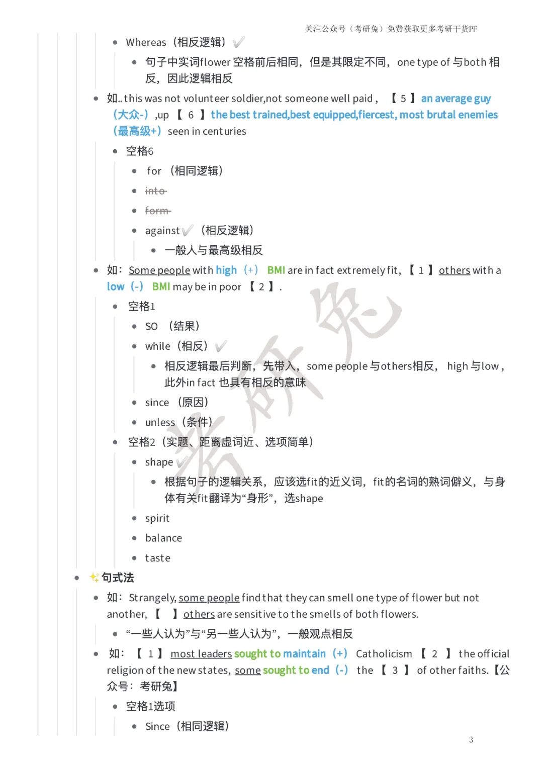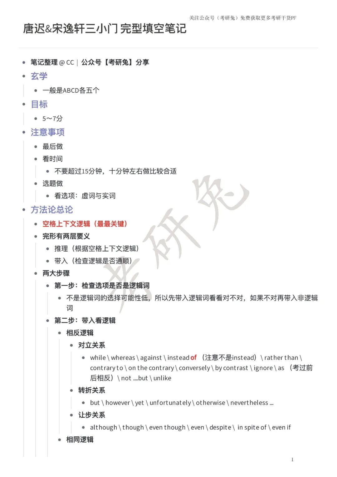 考研英语 | 唐迟&宋逸轩三小门 完型填空笔记!PDF可打印!