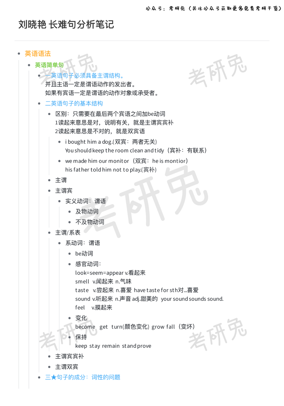 考研英语 | 刘晓艳 长难句分析笔记!PDF可打印
