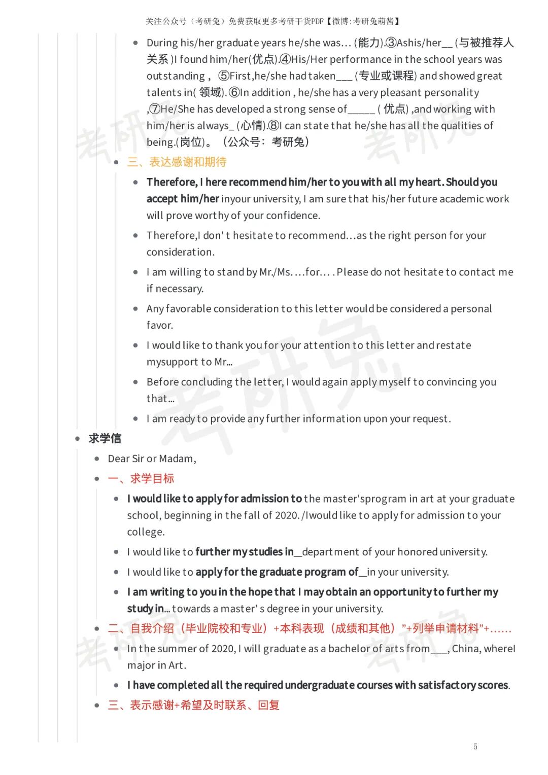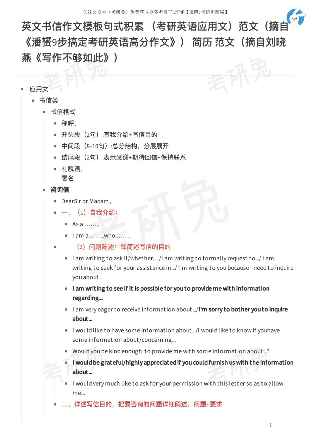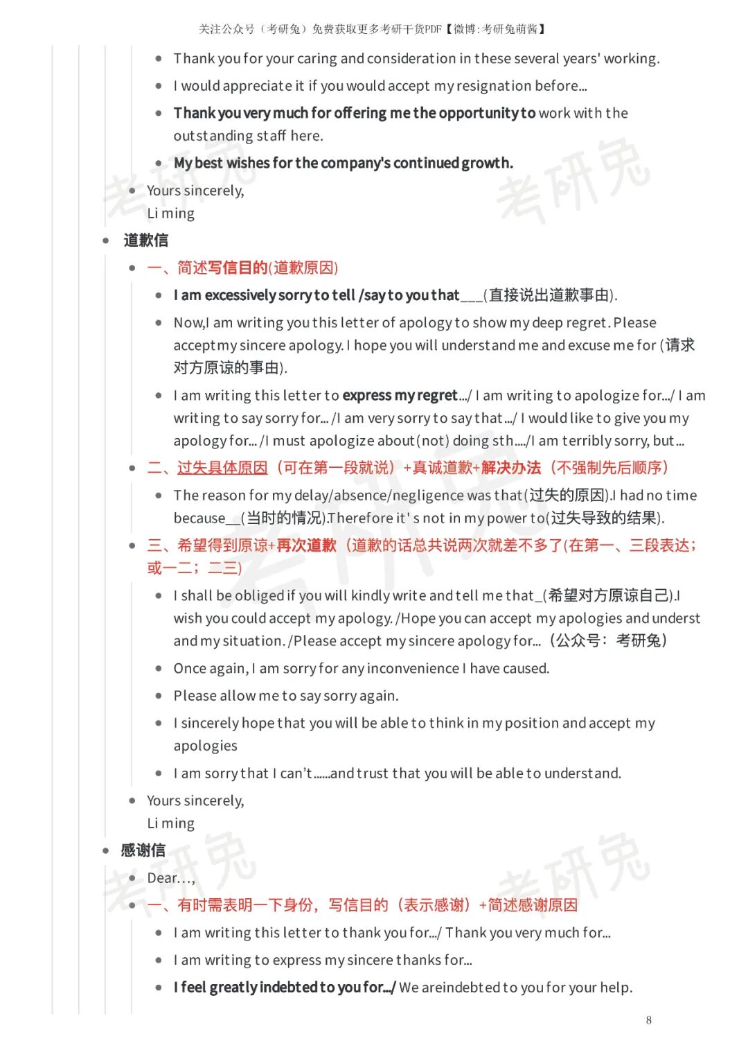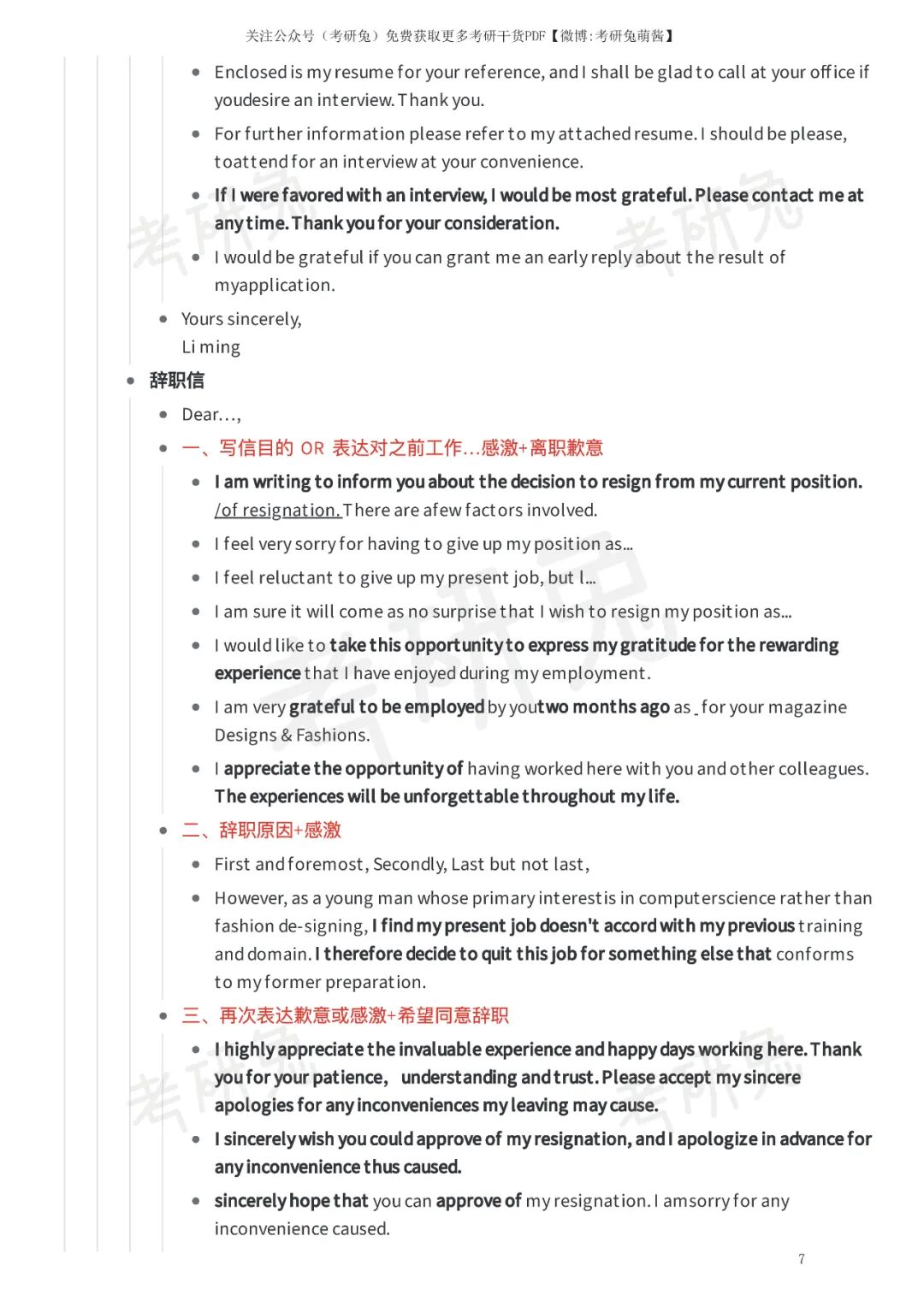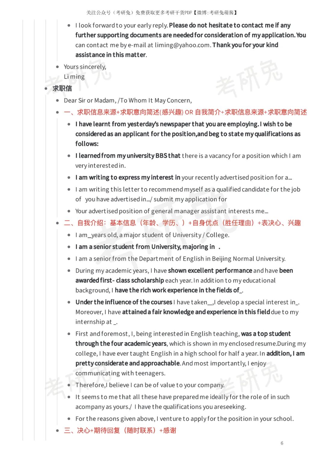 【英文书信作文模板句式积累(考研英语应用文)范文(摘自《潘赟9步搞定考研英语高分作文》) 简历 范文(摘自刘晓燕《写作不够如此》)】