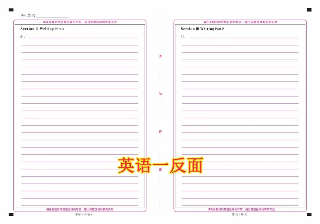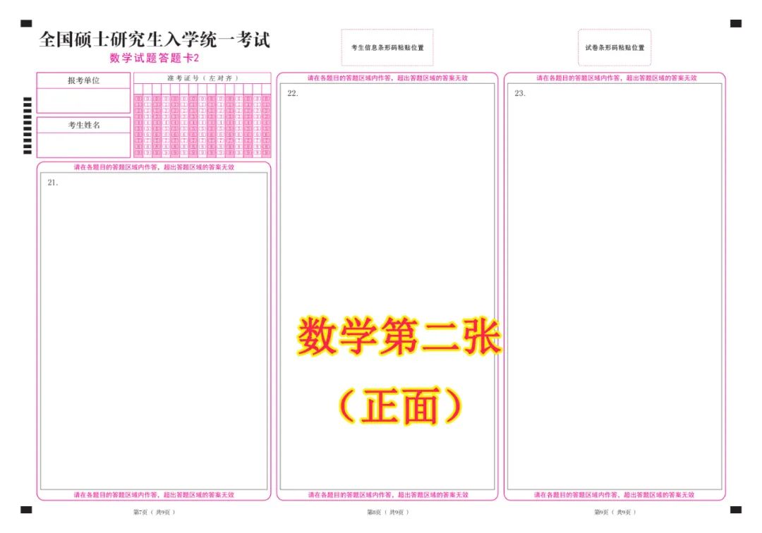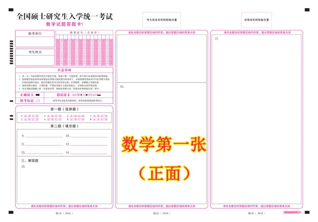 在答题卡中,最需要大家注意答题卡上面的两个方框:【考生信息条形码粘贴处】以及【试题信息条形码粘贴处】。不管是哪个条形码,千万不要贴错位置!不然贴上去就很难再撕下来了,到考场上不要慌乱,看准再下手!(两个码一个是长方矩形,一个是椭圆形。只要不是太粗心,都能贴对~)