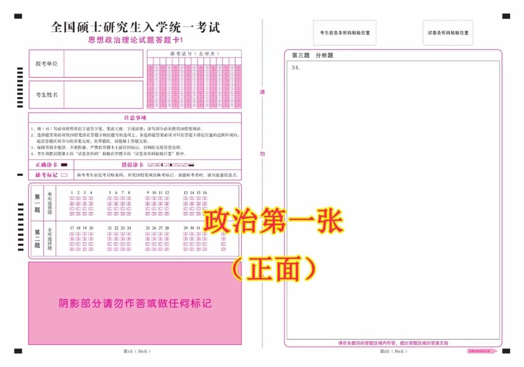 每年有把小作文写在大作文的位置的、政治分析题答错位置的、选择题涂错位置,这些本不应该丢掉的分数,都毁在了粗心上。建议大家在答题的时候,把每一道题的答题区域规划好了,在平时模拟考试的时候,就可以自己找几张草稿纸(白纸),把每一道题都写规整一些。