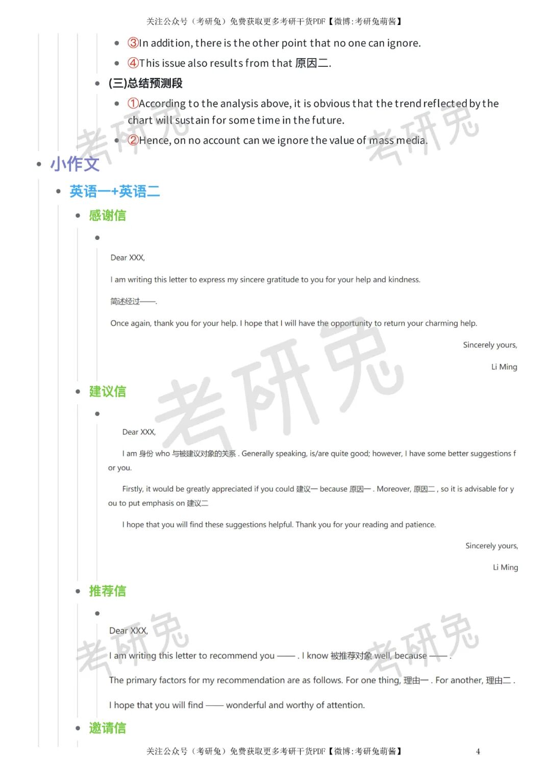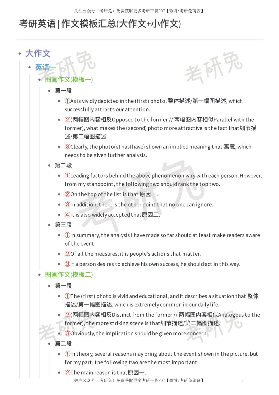 考研英语 | 作文模板汇总(大作文+小作文)!PDF可打印!