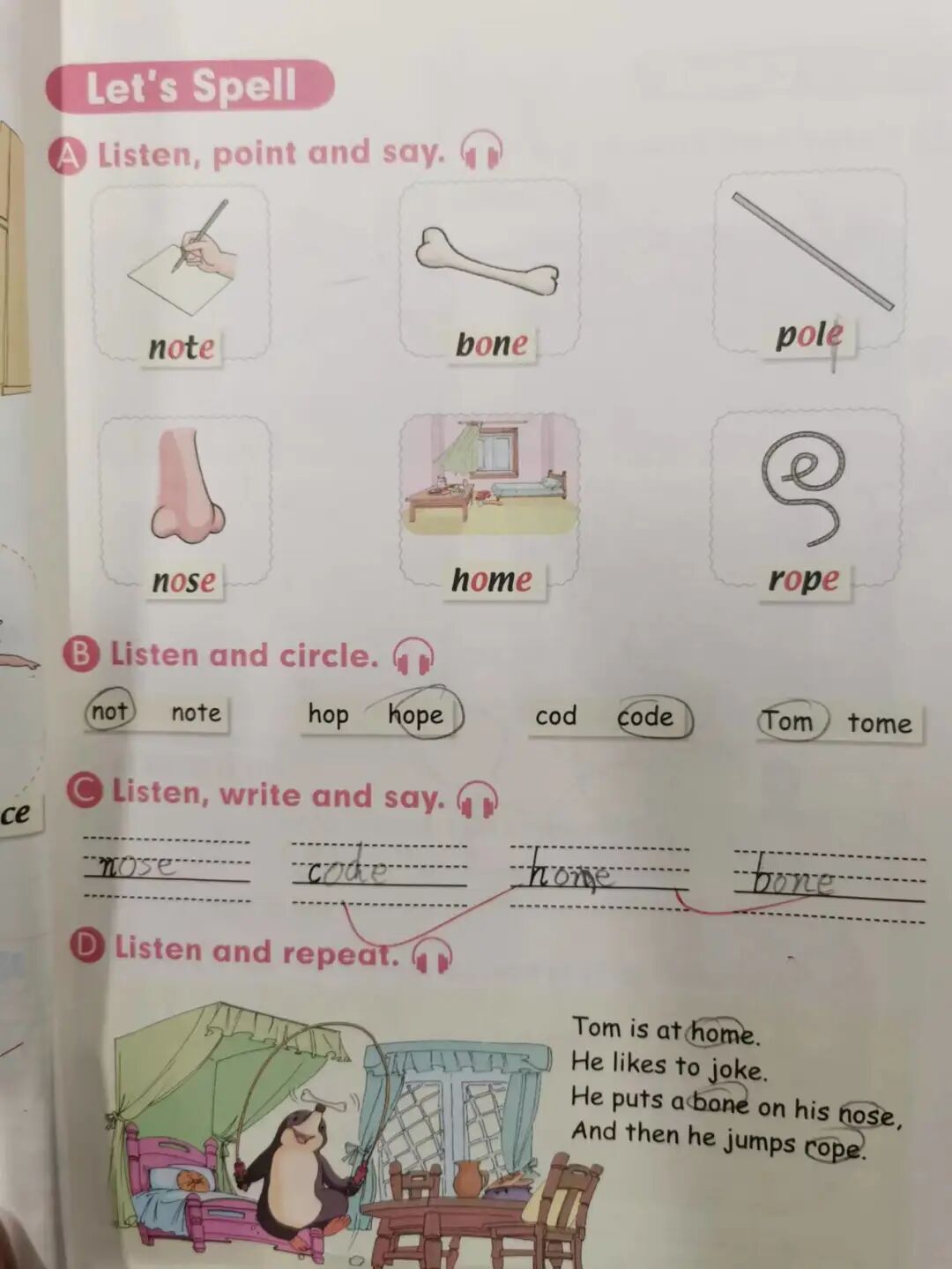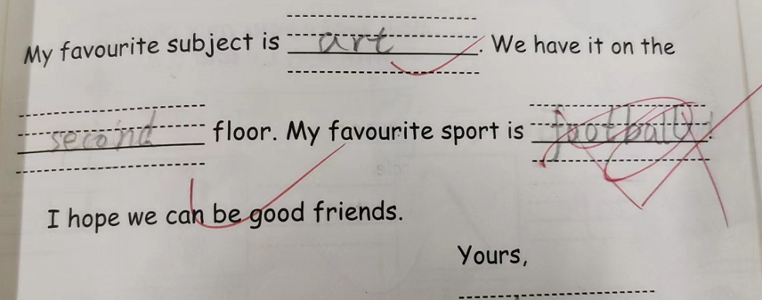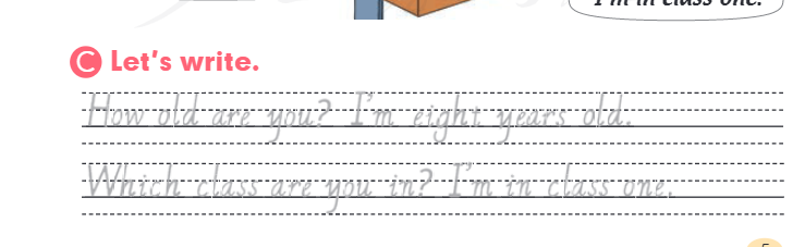 3. 会抄写:Let's Write 这个部分的内容要会抄写,字母占格要对。(1年级没有,2年级是字母,3年级有句子。)