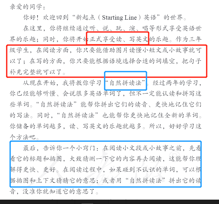 2. 会读:2年级及以上的课本里的英文内容都要会读。(1年级是否要求会读,请听老师要求。)