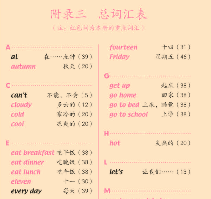 单次表里的这些单词,都要会读,能听懂,知道中文意思,也别管它红的、黑的、绿的。