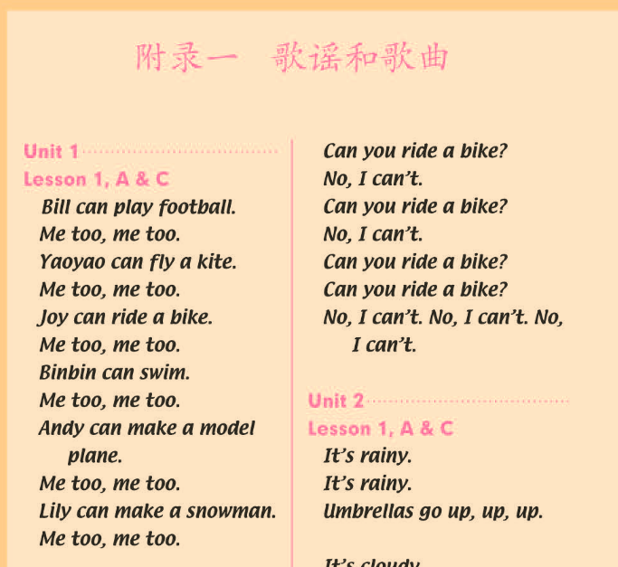 一二年级歌谣要求会唱,是重点内容,地位有点像语文里面要求需要背诵的课文。都要会唱,还得是背下来唱,不能看的。