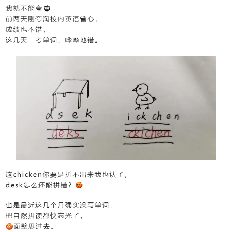 到了高年级,随着自然拼读的熟练使用,再背单词会非常容易,那时候学校也要求写得多了,自然也就记牢了。