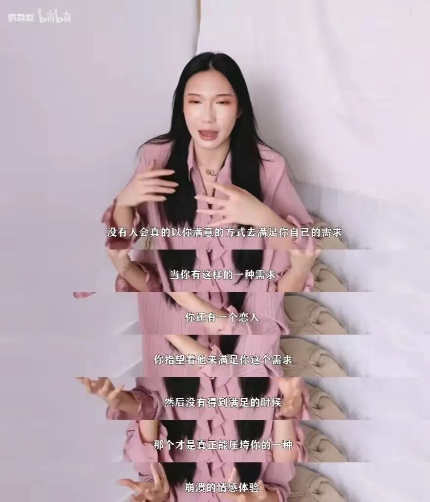 在讲到「恋爱中的期待」时,她说:“真的没有人会以你满意的方式去满足你自己的需求。"