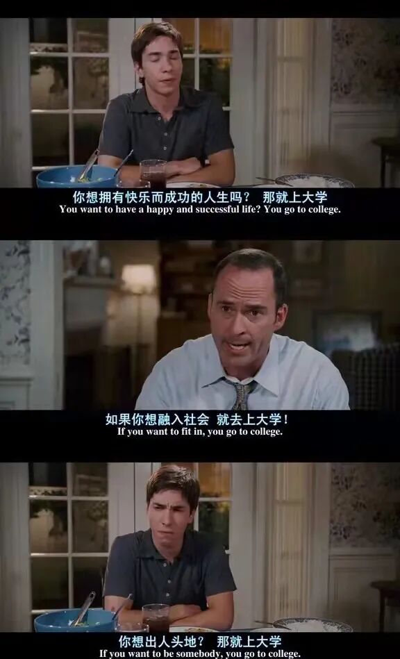 “这个社会是有准则的,其中的第一条就是 :上大学。”