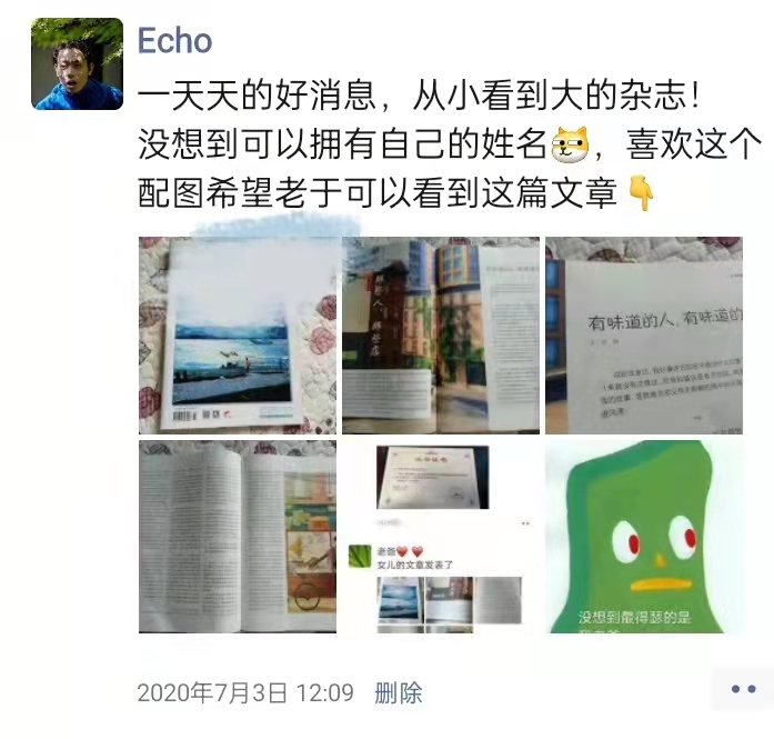 在收到印有我文章的杂志后,我之前的阴霾一扫而过。