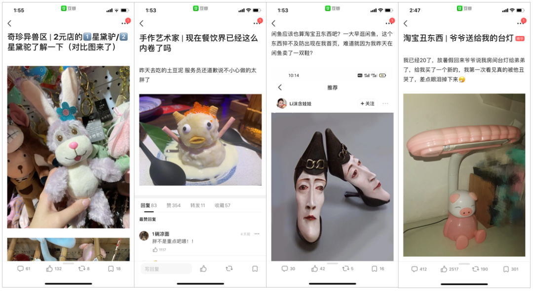 与某些平台一味的猎奇、土味审丑不同的是,豆瓣上的年轻人在吐槽丑东西时,往往能在其中也找到一些可爱的闪光点。