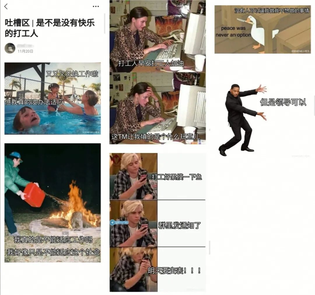 例如,在豆瓣MEMERS小组,小组成员进行交流只能使用MEME(一个被网络用户快速传播,有许多变种且内容幽默诙谐的图,视频或者文字,类似于表情包),于是你会在小组内看到这样神奇的画风:
