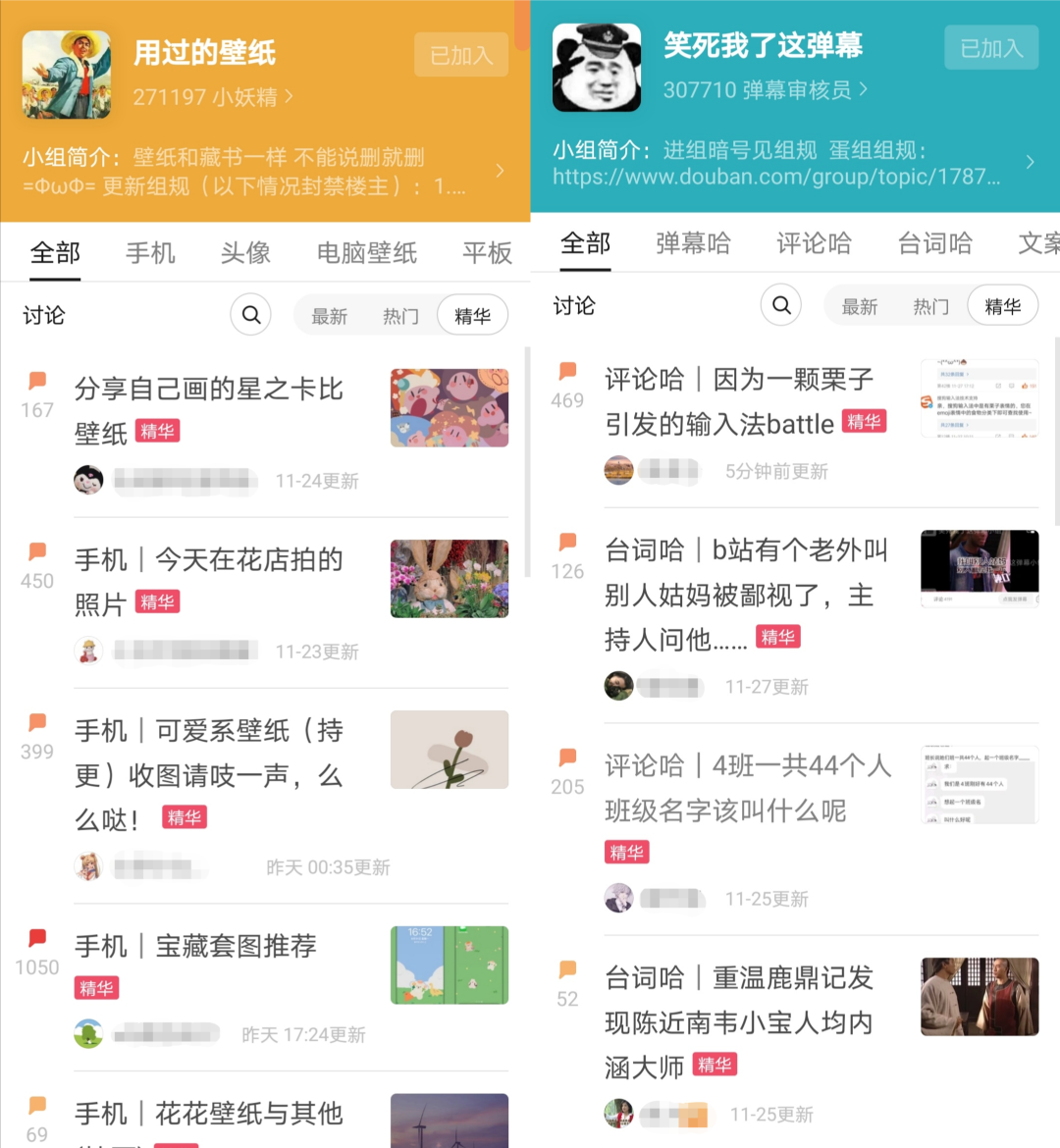 总的来看,豆瓣小组内所有成员都是相对平等的,基于兴趣和相似行为形成的小组,每一个成员都可以自由分享自己的经历、态度、观点等,它不同于知乎等知识问答社区,需要很高的创作门槛,也不像微博充斥着各类意见领袖,只要你的帖子贴近主题,能够引发共鸣,就有可能得到其他成员的认同。