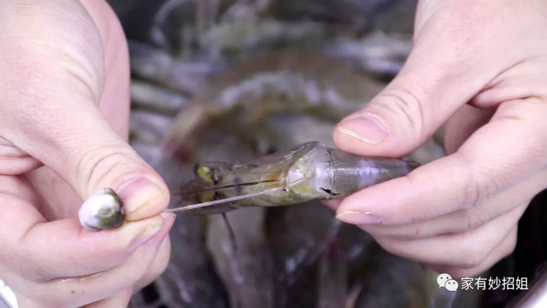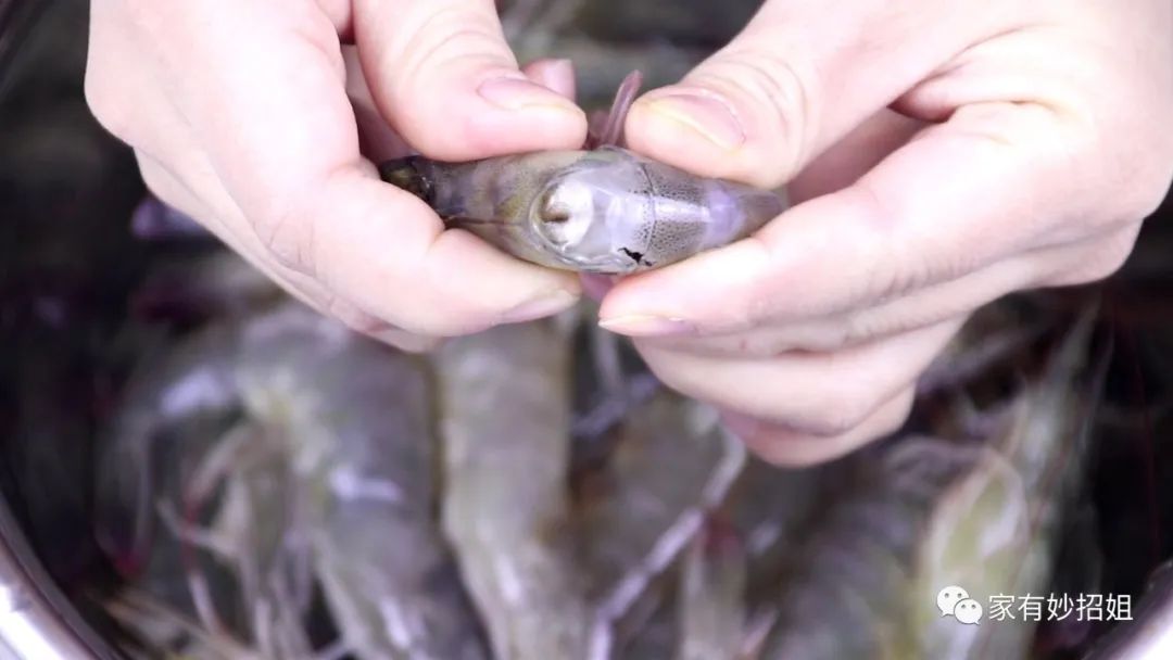 这时候我们只需要抓住挤出来的脏东西再一拎,这样虾线就会连着一起被拽出来,一只虾就处理好了,非常的干净,而且虾身还是完整的,最后只需要清洗干净就可以拿去烹饪了。