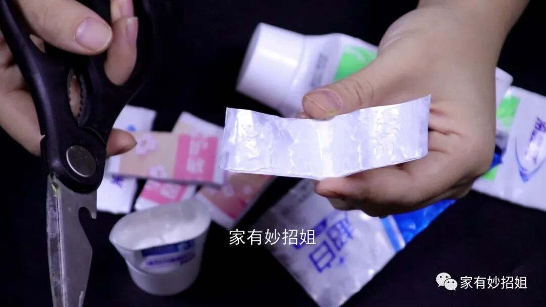 首先,我们用剪刀将牙膏皮剪成一段一段的。然后再把每一小段的牙膏皮对半剪开,这个时候我们就可以发现,在牙膏皮上还残留了很多的牙膏。虽然平时我们在使用牙膏的时候,都会一直挤,但无论你把牙膏皮挤得多扁,里面依然还是会残留很多的牙膏。接下来我们就可以利用上牙膏皮上残留的牙膏了。