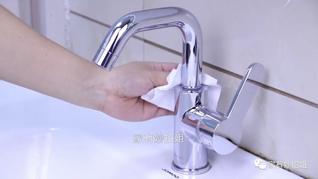 擦拭好,我们再用干净的抹布把上面的牙膏残留擦拭掉,那么我们的水龙头就清洁好了,看起来和新的一样光亮。