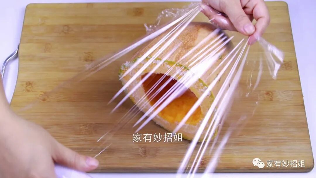 涂抹好后,再用保鲜膜将南瓜包裹住,同样地把它放进冰箱的保鲜室,这样保存的南瓜,放上一个月都不会坏,方法非常的简单有效!如果今天的文章对您有帮助,那就点一个关注,点一个赞,感谢您的支持。