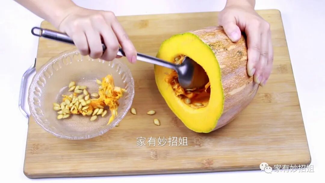 我们把南瓜切开后,里面会有很多的南瓜瓤和南瓜籽。南瓜瓤里面含有很多的水分,通常南瓜腐烂都是从南瓜瓤开始的,那么,想要南瓜保存的时间更长一些,我们就需要将南瓜瓤挖掉。南瓜瓤里面有很多的南瓜籽,我们不要把它丢了,可以把南瓜籽清洗出来,然后将它晒干炒着吃,味道是非常不错的。