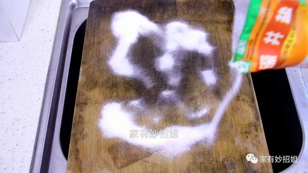我们的菜板都是直接和食物接触的,它的卫生就非常的重要了。其实清洁菜板也非常的简单,首先我们将菜板打湿,然后再往菜板上倒一点食盐,食盐具有杀菌消毒的作用,而且食盐的细小颗粒可以很好的渗入到缝隙里面,将缝隙里的细菌都消灭掉,食盐它也能增加摩擦力,可以使菜板更好的清洁。