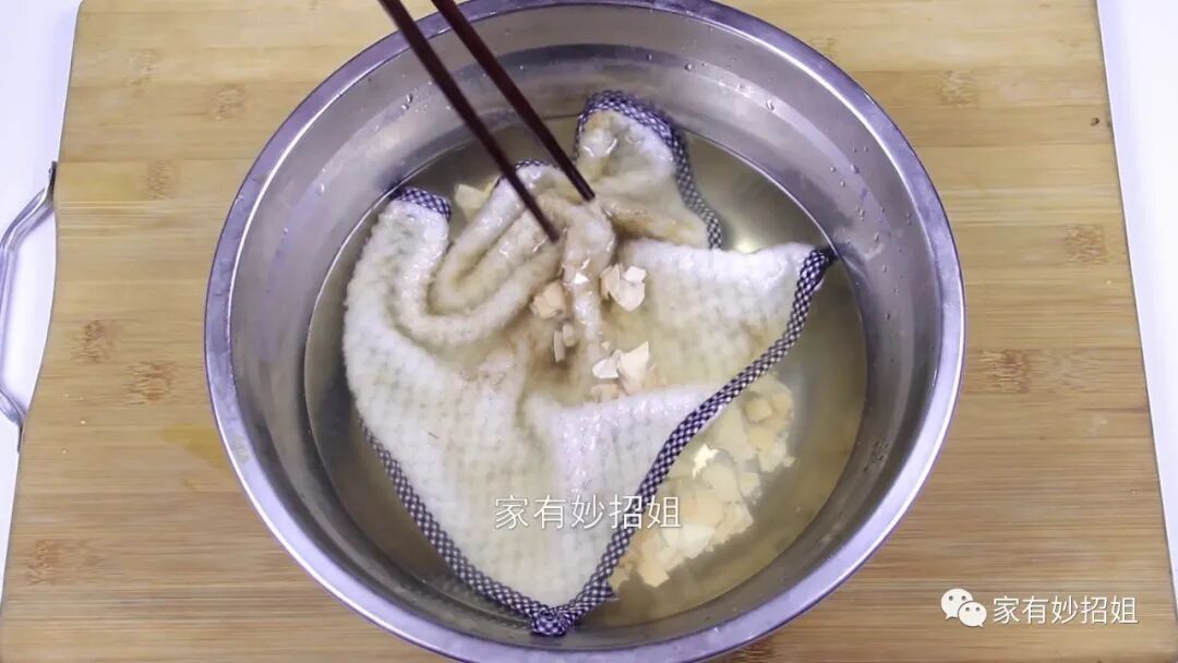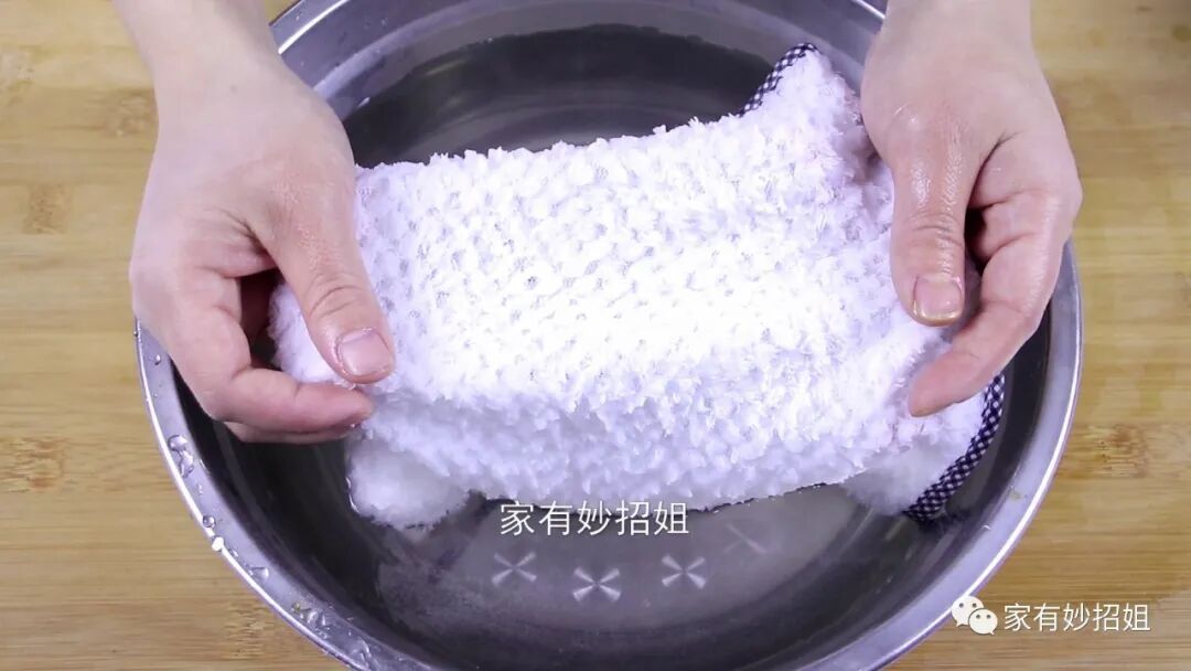 大概浸泡上十几分钟,水不烫手的时候,我们再将抹布搓一搓,这个时候我们就可以发现,抹布已经清洗干净了。而这个浸泡的水也变得很脏了。这是因为鸡蛋壳表面含有丰富的蛋白质和水溶液,可以很好的分解抹布上的脏东西。最后,我们只需要用清水将抹布漂洗一下就可以了。
