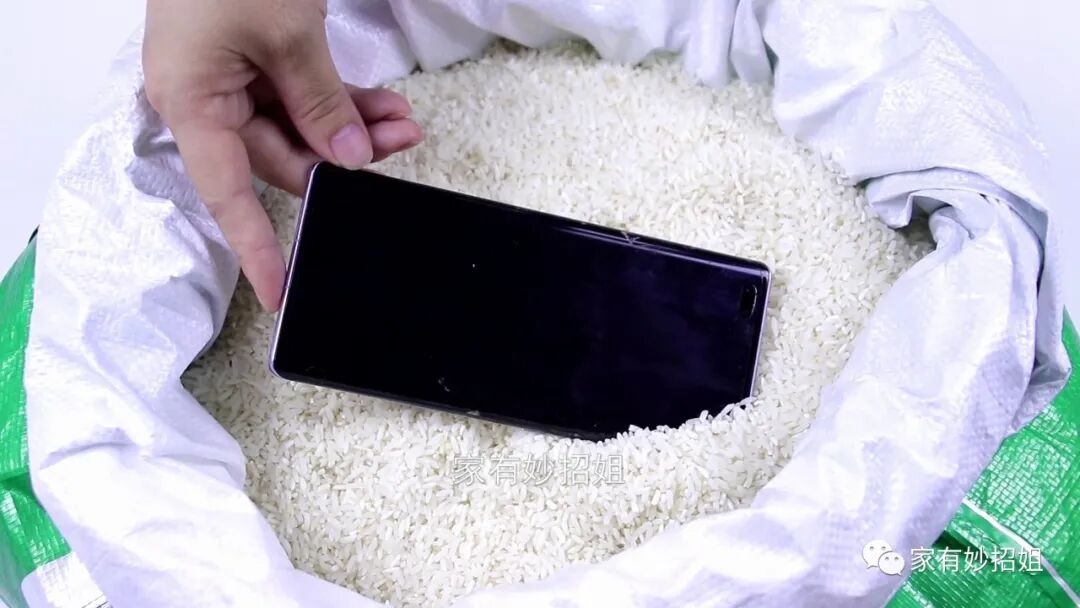 干燥的大米就可以将手机里面的水分吸附干净,只要把手机埋在大米里一个晚上,第二天再拿出来,手机就可以正常地使用了。